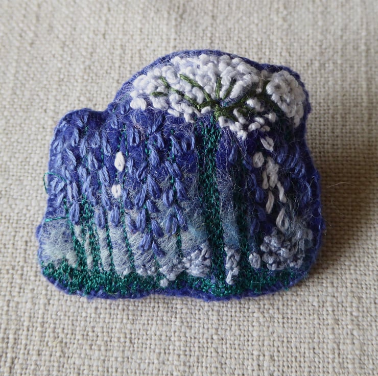 Bluebells and forget me nots design, hand embroidered, felted brooch.