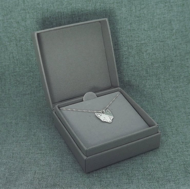 A sterling silver fox pendant necklace inspired by wisdom, intuition, and the natural world - handmade from recycled silver in the UK. Part of the Nature's Spirit collection, a series celebrating wildlife, natural elements, and quiet symbolism. This design is available in several sizes within the Nature's Spirit collection, allowing you to choose a more delicate or more prominent version depending on how you like to wear your jewellery.