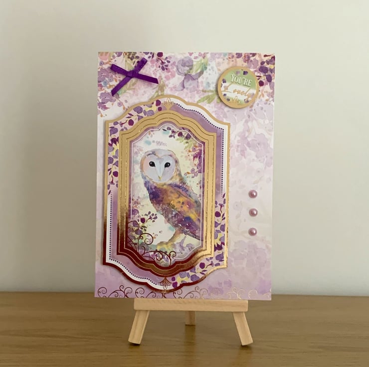 The gold foiled owl topper is attached to the card with foam pads to give the card dimension.