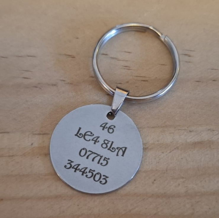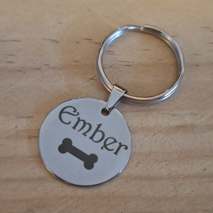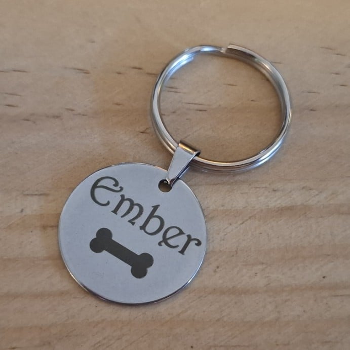 Celebrate your furry friend's unique identity with our personalized dog tag, a durable and stylish round metal accessory designed for dog lovers who cherish both function and sentiment. This custom-engraved tag offers a perfect blend of resilience and elegance, making it an essential accessory for your pet. Crafted for everyday wear, this lightweight and compact dog ID tag fits comfortably on collars or bags, ensuring your beloved companion's information is always within reach.