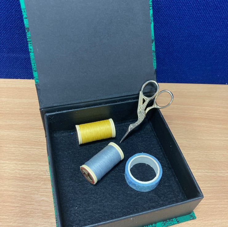A little box, perfect home for cocktail napkins (you know how they always get crumpled when you open a packet), or for special keepsakes, jewellery, little sewing projects, stationery, or as a tidy up box. Approx. 5.75" x 5.75"