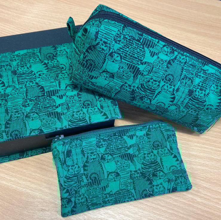 A gift set of 3 useful pieces in a cute cat fabric.