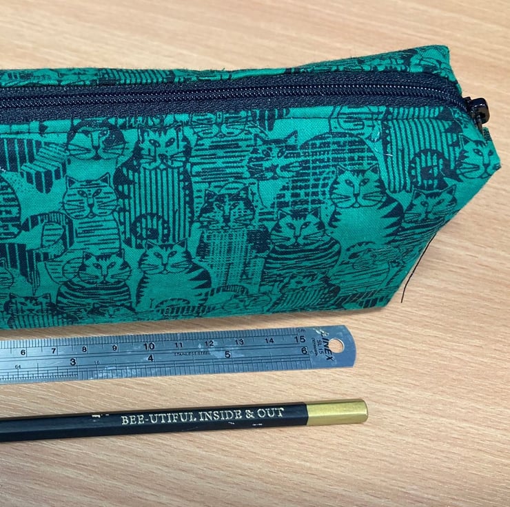 A boxy pencil case, or little sewing pouch. Approx. 7" x 2.5" x 1.75"