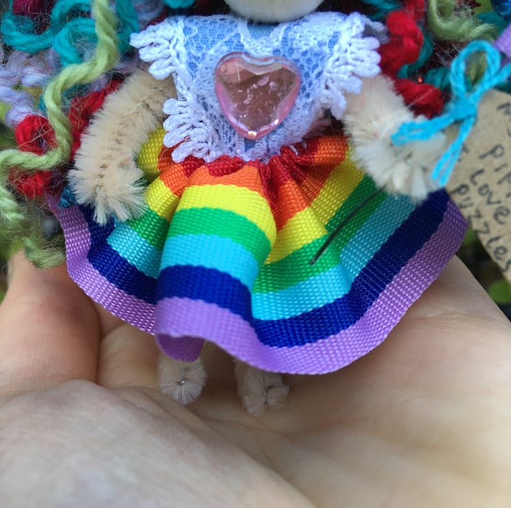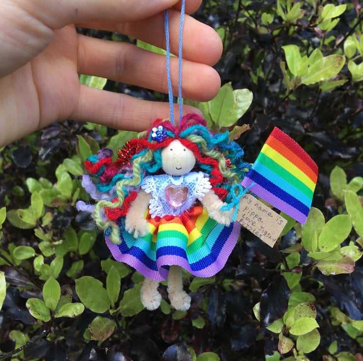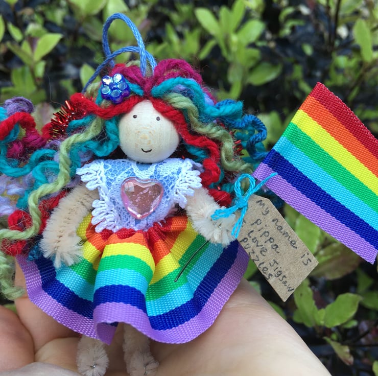 This rainbow fairy is handmade and unique.