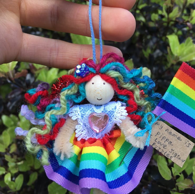 She has a tag with her name on, and something that she loves. This little fairy is called Pippa, and she loves jigsaw puzzles.