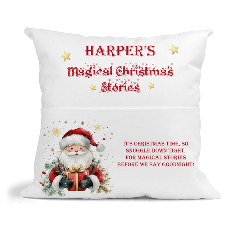 Personalised Christmas Story Book insert filled Cushion Santa, Santa Claus