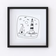 This illustration is inspired by many sailing adventures- the joy of sailing and the greater joy of heading home to loved ones.
