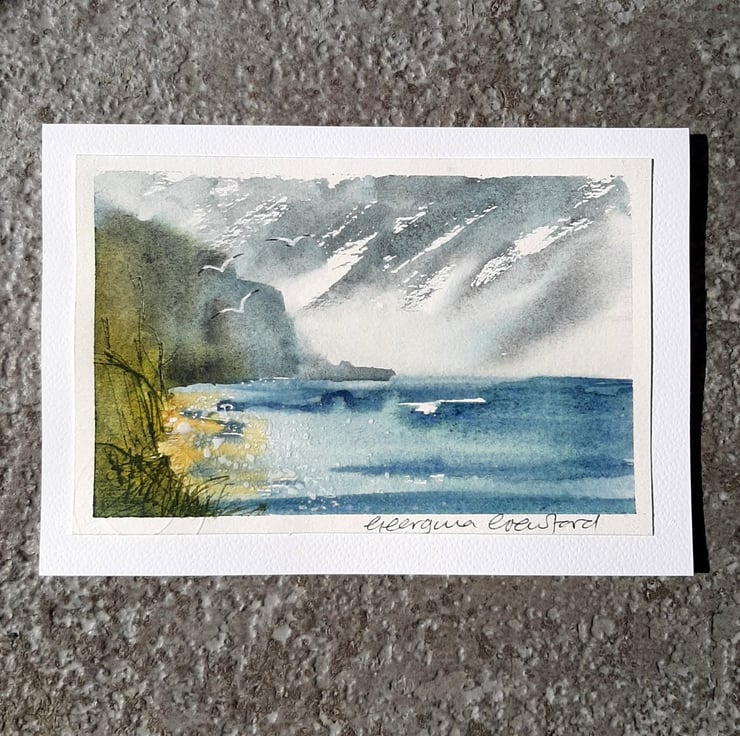 Painted on watercolour paper and mounted onto quality, white card stock.