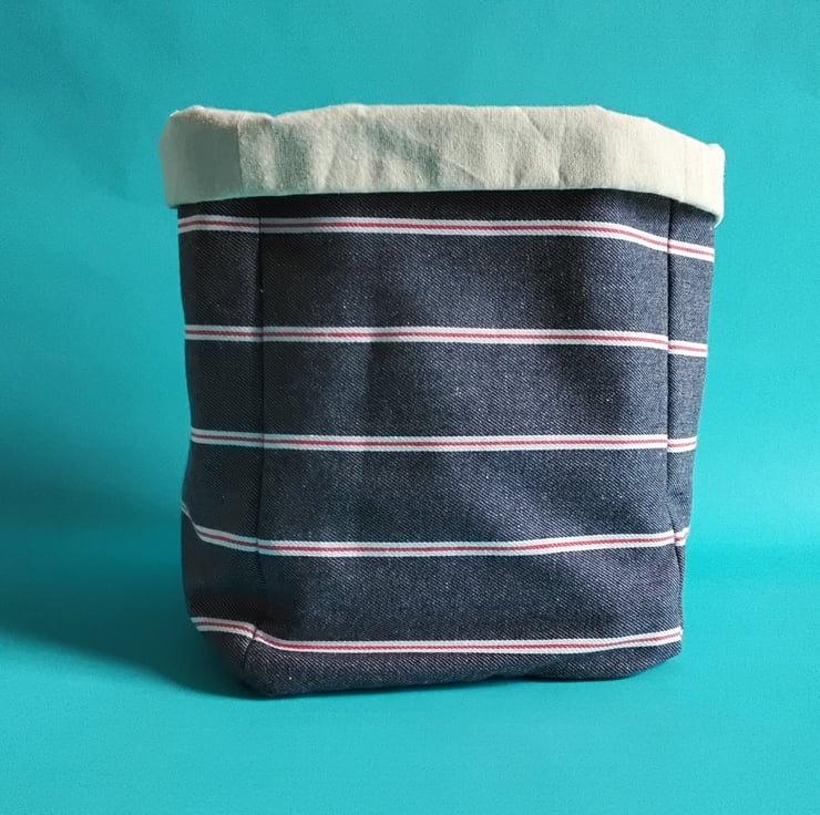 Measuring 8 x 8 inches (20.5 x 20.5 cm), this fabric basket is a great storage solution for any room in your home, helping you to keep organised and stylish in one fell swoop. Made from a soft, yet hard-wearing, denim with natural calico lining, this basket is wonderfully versatile and can be used to store underwear and socks; cosmetics and bathroom supplies; kids toys and would even make a great plant pot holder - the only limit is your imagination!