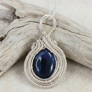 A wire-work silver-tone haircomb, made with a beautiful lapis lazuli gemstone, in a navy and white colour scheme. This haircomb measures 6.5" by 3"