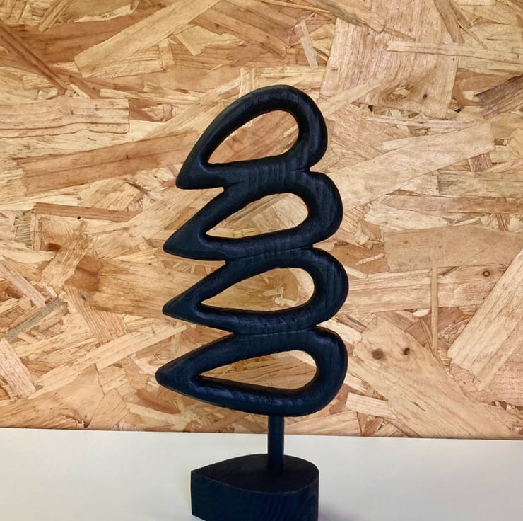 This abstract wooden sculpture is a one of a kind, produced by hand in the uk, designed to elevate your home.