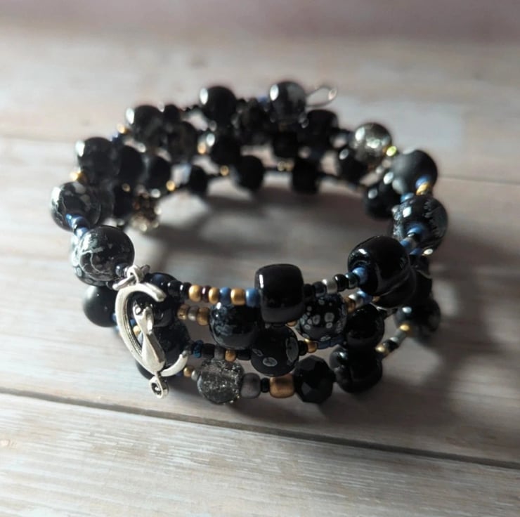 Design: Hand-threaded on professional memory wire. It holds its circular shape perfectly, meaning no fiddly clasps to worry about, just wrap and go!