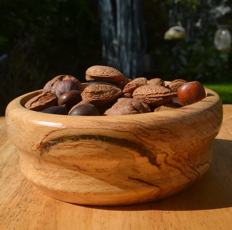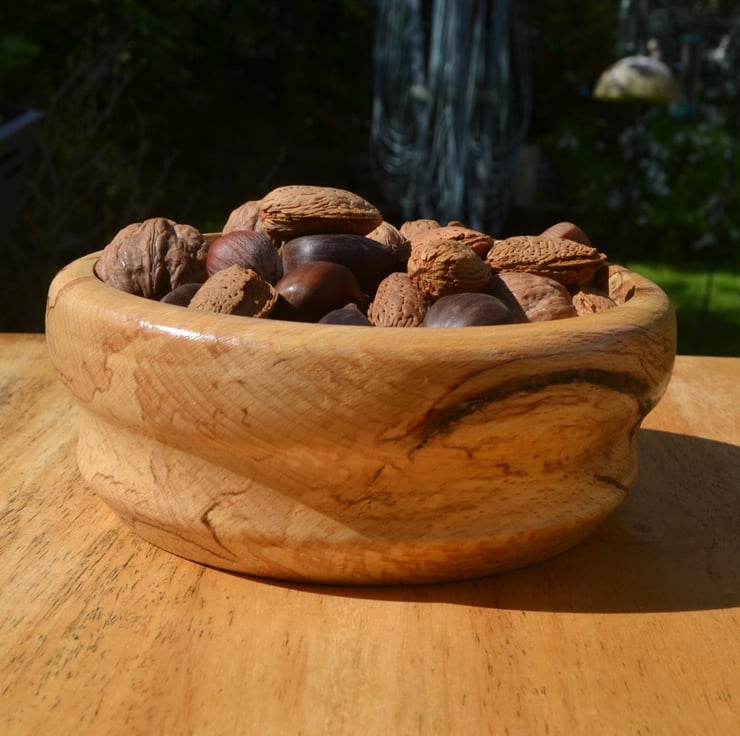 Spalted Beech Wood Bowl, various uses: Wrapped sweets, dried botanicals, potpourri, jewellery or decorative fruit nuts etc. Finished with Danish oil and sealed with