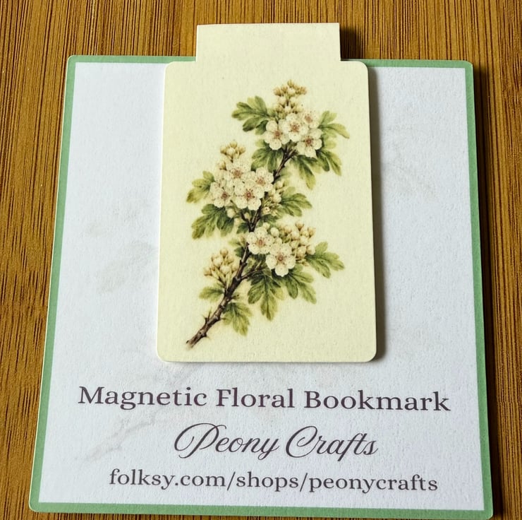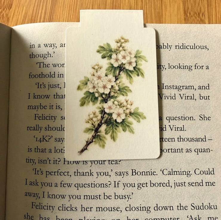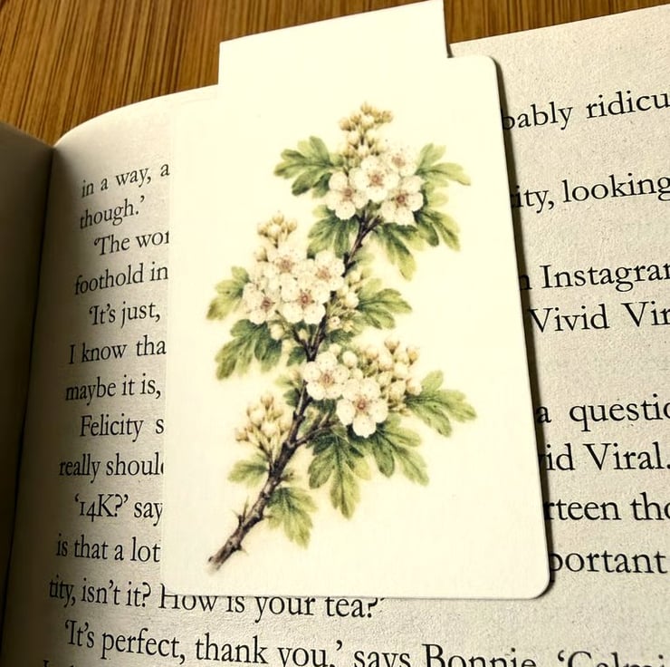 A beautifully illustrated Hawthorn magnetic bookmark, inspired by British countryside hedgerows.