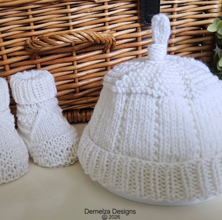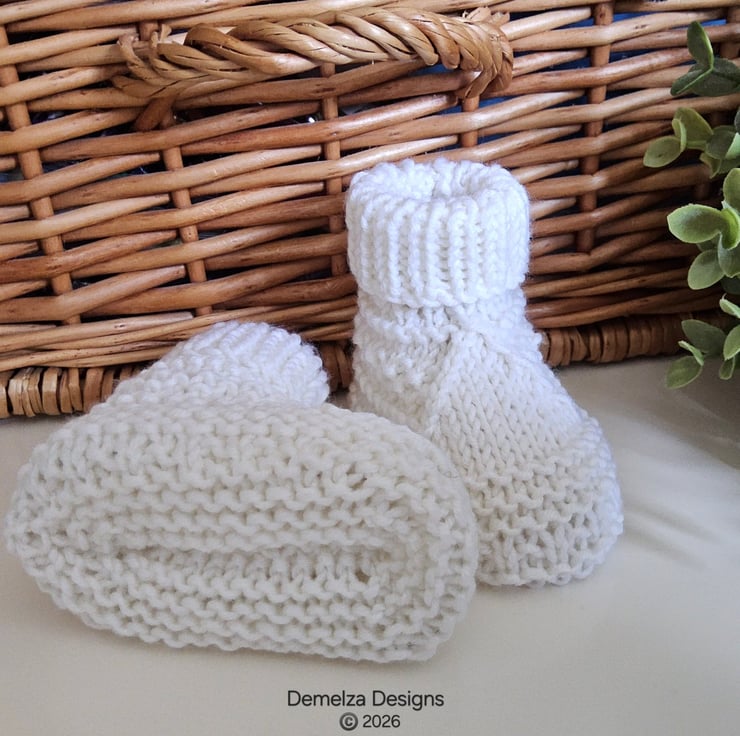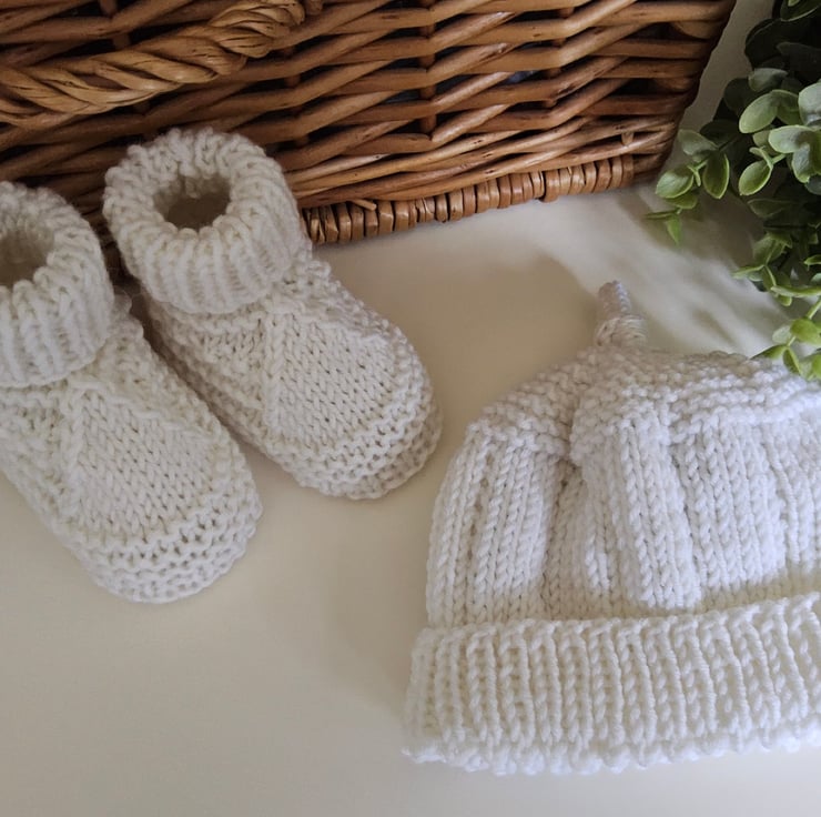 A unique designer luxury baby set ideal for a newborn or baby shower gift any expecting or new mother would love to receive. They have been hand crafted in Cornwall using quality premium machine washable 90% super soft merino wool with 10% polyester.
