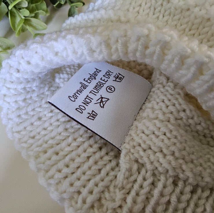 Baby knitwear is designed and hand crafted by Demelza Designs in Cornwall meeting UK baby safety standards, Only branded premuim acylic, acrylic/natural fibre blends or pure natural fibre yarns are used in baby knitwear which conforms to BS984/76 standards.