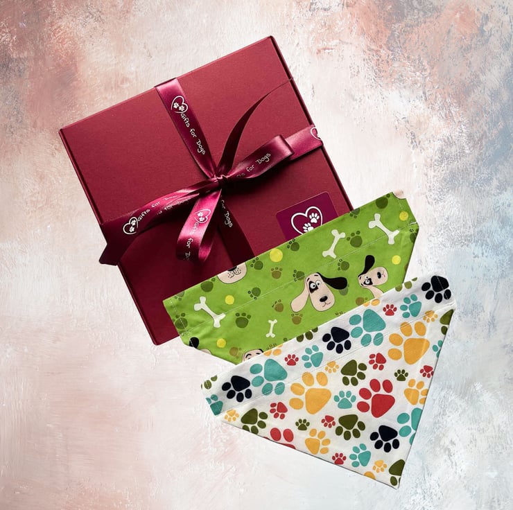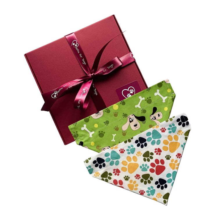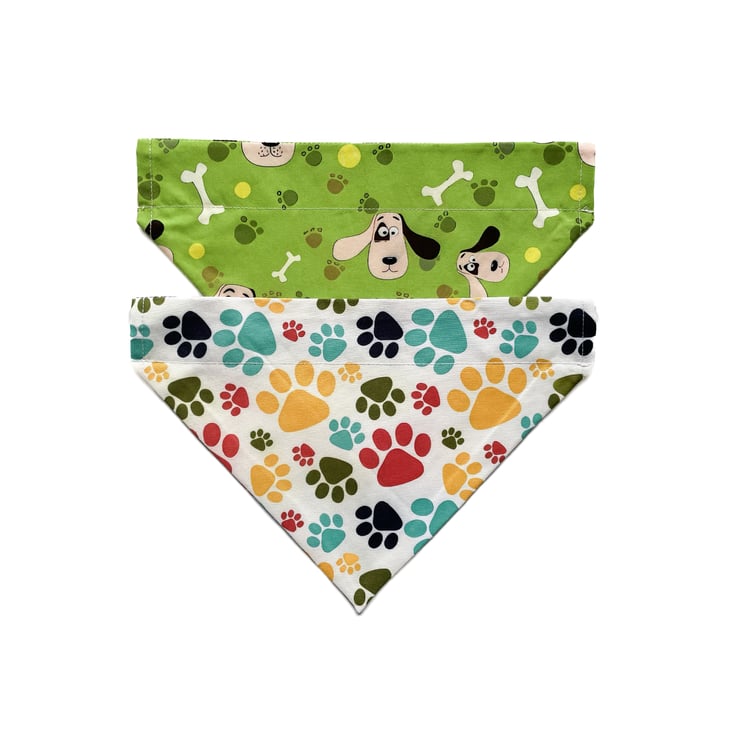 Dog bandanas are a cute and stylish way to dress up your furry friend. They are made with high-quality fabrics and can be customised with different patterns and colours to suit your dog's personality. Easy to add your dogs collar through this bandana.